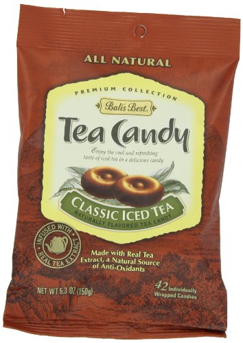 -. Binding : Grocery -. Brand : Bali's Best -. Feature : Each bag contains 42 individually foil-wrapped pieces. Case contains twelve 5.3 oz bags. / 100% natural and made with real tea extract, a natural source of antioxidants. / Perfect for the office or as a gift for a tea lover! / Individually foil-wrapped pieces to preserve aroma and taste. / Ships in Certified Frustration-Free Packaging -. Label : Bali's Best -. Manufacturer : Bali's Best -. MPN : 10819529007653, -. NumberOfItems : 12 -. PackageQuantity : 12 -. PartNumber : 10819529007653, -. ProductGroup : Grocery -. ProductTypeName : GROCERY -. Publisher : Bali's Best -. ReleaseDate : 2008-03-21 -. Studio : Bali's Best -. Title : Bali's Best Classic Iced Tea Candy, 5.3-Ounce Bags (Pack of 12)