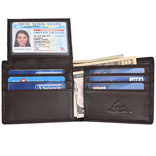 -. Title : Hopsooken RFID Leather Bifold Wallets Women Men Flipout Slim ID Wallet Trifold