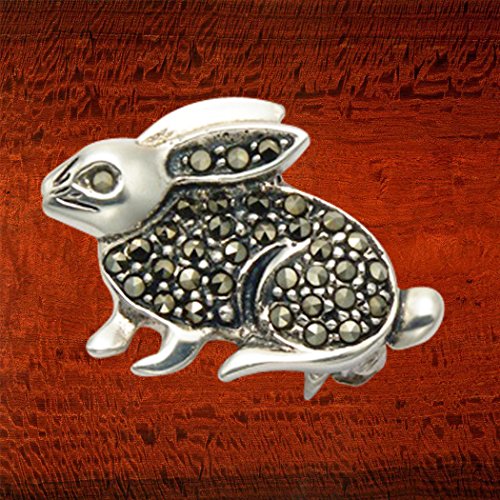 -. Title : Small Sterling Silver & Marcasite Bunny Rabbit Pin