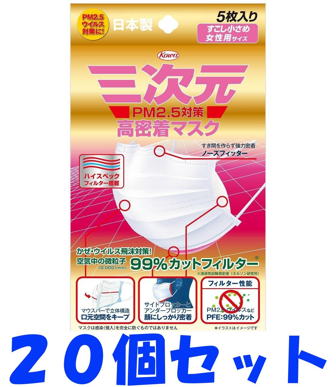 Three-dimensional high-adhesion mask a little smaller size PM2.5 corresponding 5 sheets × 20 piece (100 sheets)