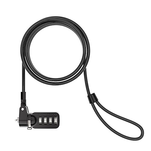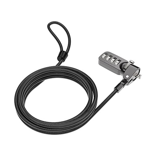 -. Feature : 6 Foot Cable Lock / Works with any equipment with a built-in security slot / 4-dial combination lock easily resets / Up to 10,000 possible combinations / Secures your electronic devices / Easy to install / The cable can be looped around a stationary object / Perfect first line of defense against theft