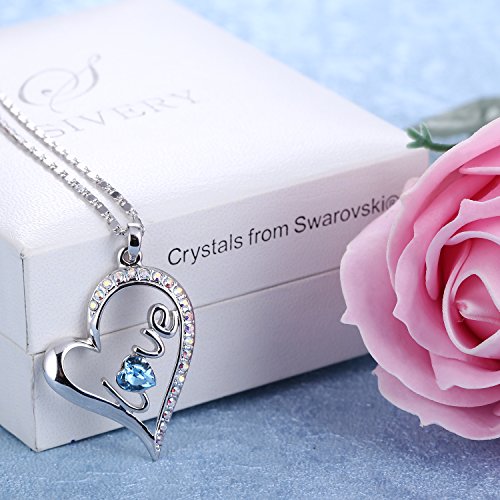 -. Feature : HIGH-QUARLITY: Elegant Crystals from Swarovski & Rhinestone & High Quality Alloy. / ♥Ideal Gift choice♥ Comes in a Sivery fashionable gift box, best mothers day gifts, perfect for any gift giving occasion, suitable gift for your lover, wife, fiancee, girlfriend. Let it be your love confession! / ♥Specification♥ Pendant: 0.9 inch(Length)/0.2 inch(Height)/1.1 inch(Width); Chain:16 inch+2 inch(Extend Chain); Color: Ocean Blue. Eco-friendly Rhodium Plated alloy, Lead-Free & Nickle-Free. Adorable, Fashion Design, Hand Polished, Simple but Elegant. Our crystals provide you a peculiar visual feast and endows a charming imagination and innovation to this elegant jewelry / ♥Notice♥ This is NOT a Swarovski product but a piece made with Swarovski Crystal. We imported the crystals from Swarovski@ with their permission after the necklace is well designed and then skillfully manufactured in our independent workshops / ♥Topnotch customer service, 100% satisfaction and money back guarantee. This exquisite women jewelry gives you a totally fresh impression. Just be happy to add this beautiful necklace to your jewelry collection