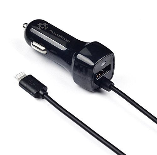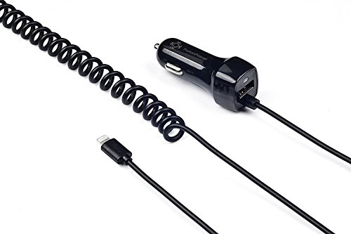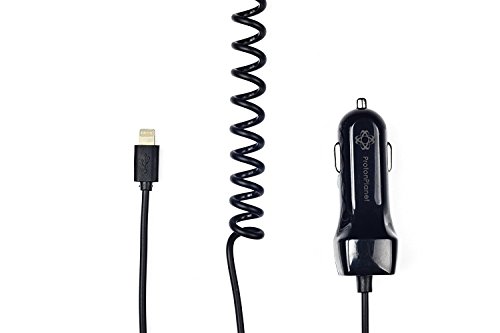 iPhone 7 Car Charger, ProtonPlanet Lightning Coiled Car Charger Adapter for iPhone 7/7 Plus 6/6s Plus with extra 2.1A High Speed USB port, Black