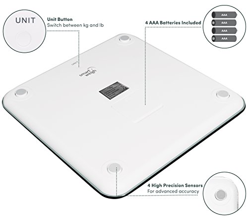 Precision Weighing - Get the most accurate readings of your body weight. Weight scale uses four high precision sensors to instantly read users weight while keeping results consistent. Result remain consistent to weight capacity of 400lbs with 0.2lb increments