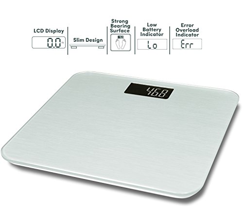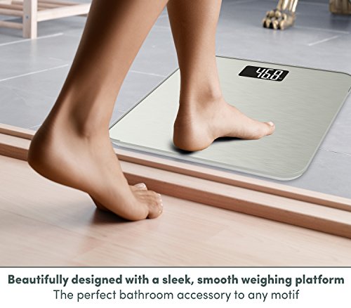 Modern Design - Bathroom scale is crafted from quality materials giving it a beautiful sleek design while also being durable. The large tempered glass platform is stable and long lasting. Large negative LCD display makes reading weight easy without having to bend down