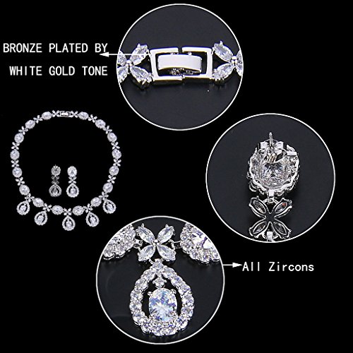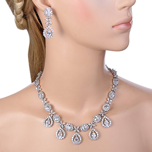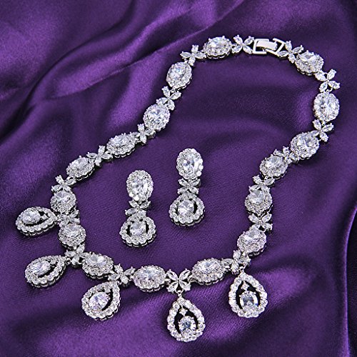 -. Binding : Jewelry -. Brand : EVER FAITH -. Department : womens -. Feature : [!]EVER FAITH is a US registered trademark and Ever Faith Jewelry(former name: Kiss Bling) is its only owner. We will pursue legal action against trademark infringement in case of UNAUTHORIZED sale or resale. / Cubic zirconias are pronged and paved to the jewelry item to secure from loosing. Small stones are paved and held in place by little beads of the setting metal. Larger stones use a claw-shaped type of binding to be welded or soldered to the setting metal. / Necklace Length: 42.5cm(16.7"). Attachment Size:3cm(1.2") by 11.5cm(4.5"), Earrings Size: 1.7cm(0.7") by 4.5cm(1.8"). / Brass Metal is much smoother and will protect your skin from rubbing. You will feel comfortable when wearing it. Also, jewelry made by brass metal has light weight. / Wrapping: Come with a gift box or favor bag (depend on product size). If you need assistance please contact us. -. Label : EVER FAITH -. Manufacturer : EVER FAITH -. ProductGroup : Jewelry -. ProductTypeName : FASHIONOTHER -. Publisher : EVER FAITH -. Studio : EVER FAITH -. Title : EVER FAITH® Silver-Tone Cubic Zirconia Elegant Flower Leaves Water Drop Necklace Earrings Set