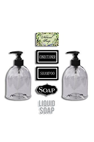 2 Pack 16 Ounce Refillable Soap Dispensers With Designer Waterproof Labels (2)