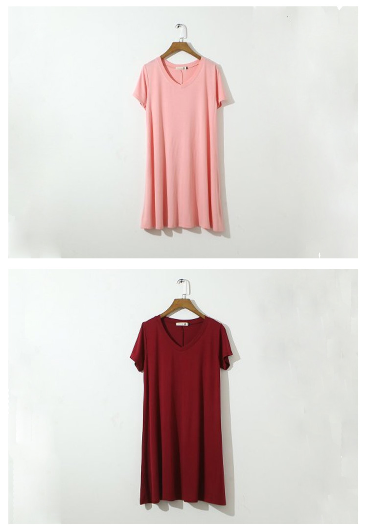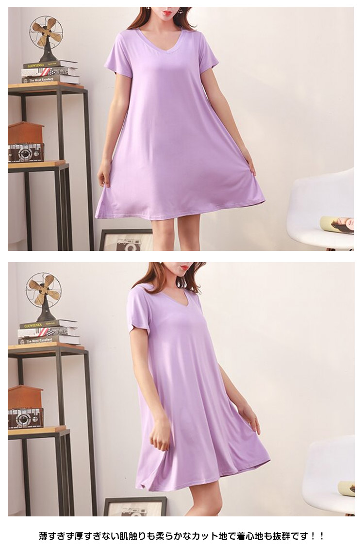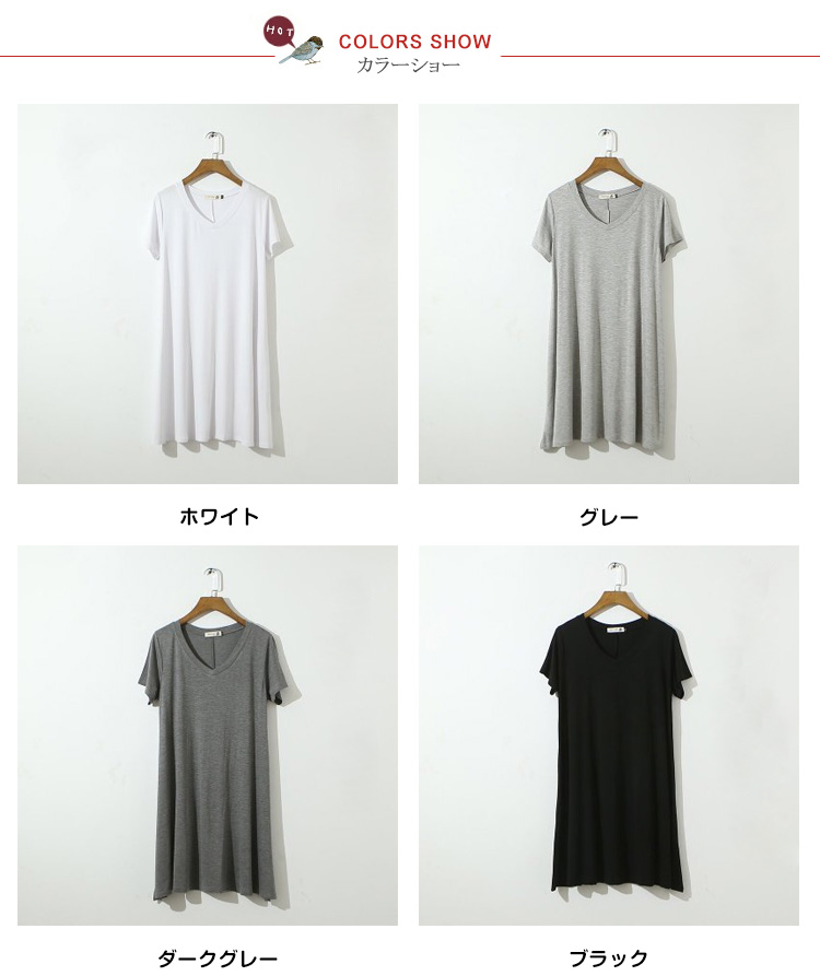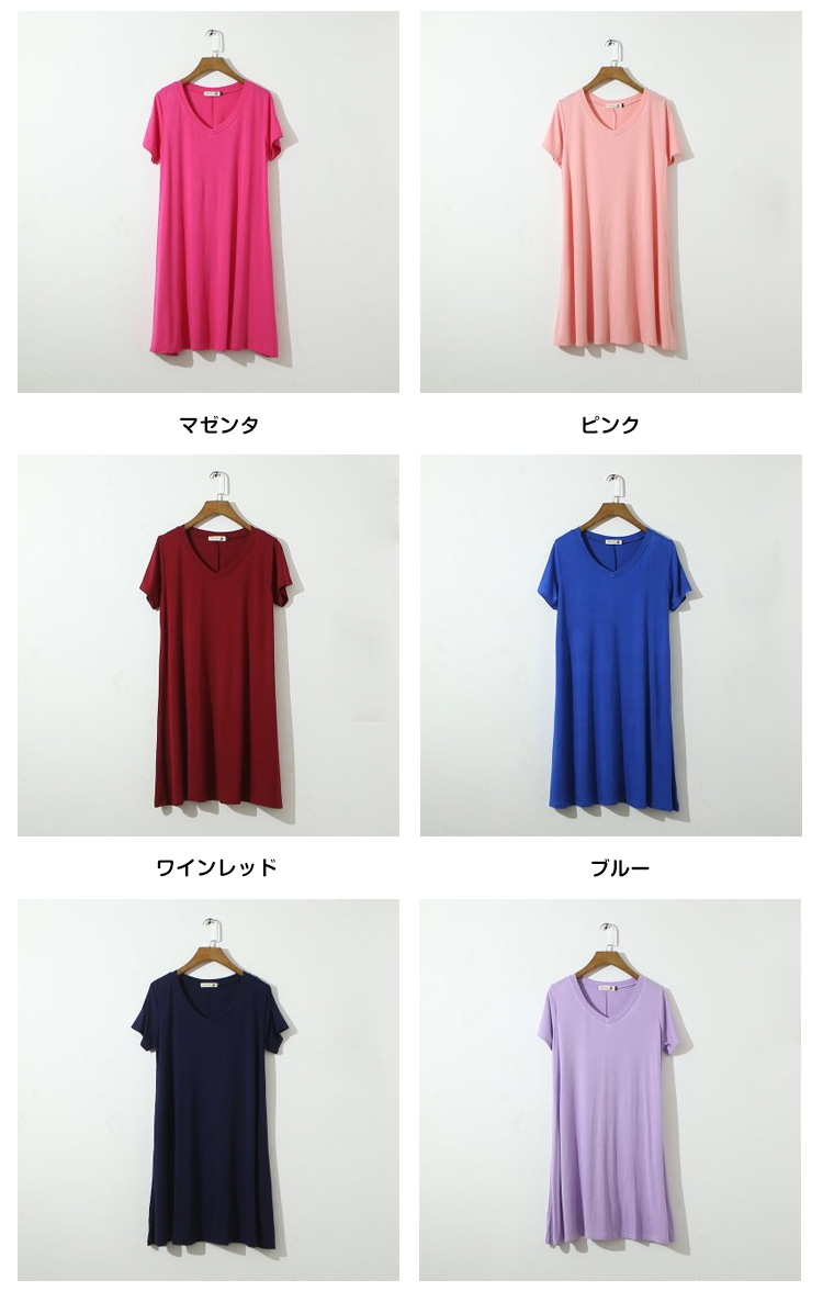 | シンプルVネック半袖ワンピースの登場です!!女性らしいふんわりフレアシルエット♪薄すぎず厚すぎない肌触りも柔らかなカット地で着心地も抜群です!!このシルエット、妊婦さんのマタニティ服としても大活躍!臨月近くの大きなお腹を目立たせずふんわり優しく包み込んでくれるんです。 | |