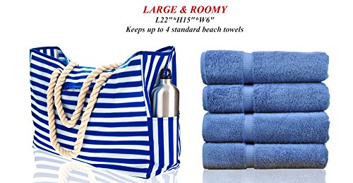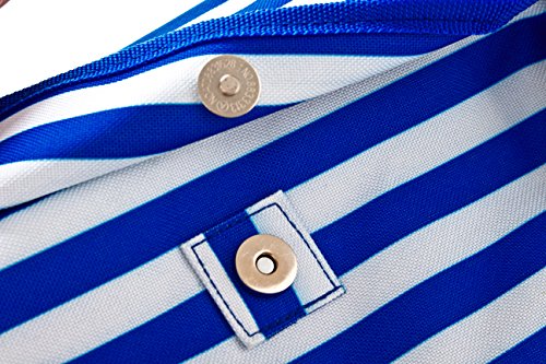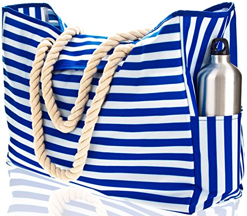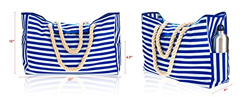 - TOP MAGNET BUTTON, STYLISH & MULTIPURPOSE - with its classic nautical design, this xl beach tote is perfect for a beach family time, voyage, pool party, picnic and more! It effortlessly doubles as a cruise bag, travel bag, sports bag, vacation bag, overnight bag, pool bag, gym bag, grocery bag, or even a carry-on luggage handbag for the flight to store your laptop and other essentials