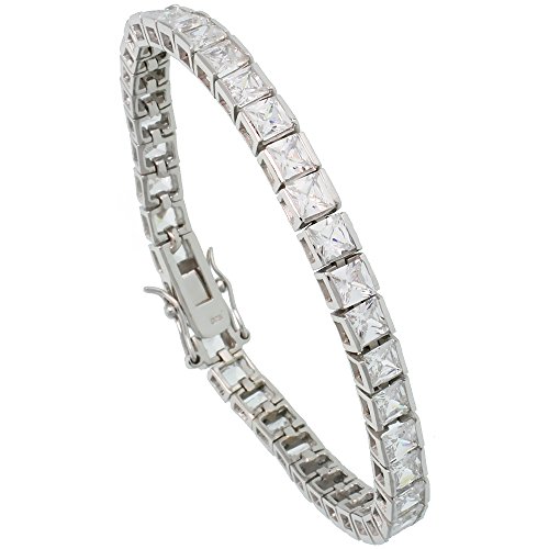 -. Title : Sterling Silver 15.3 ct. size P.R.Incess Cut CZ Tennis Bracelet, 5/32 inch wide