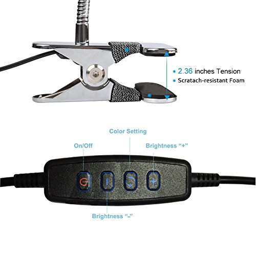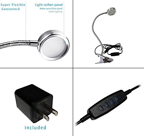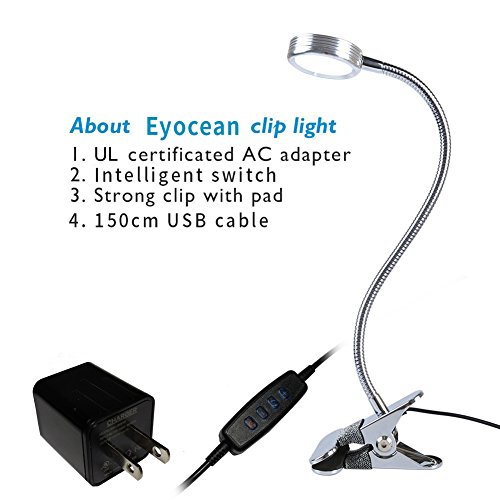 - Adapter Included: A USB AC adapter and 5 feet cord are provided to support the clip on light.