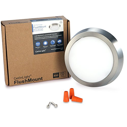GetInLight 5 Inch Flush Mount LED Ceiling Light with ETL Listed, Bright White 4000K, Brushed Nickel Finish, IN-0302-1-SN-40