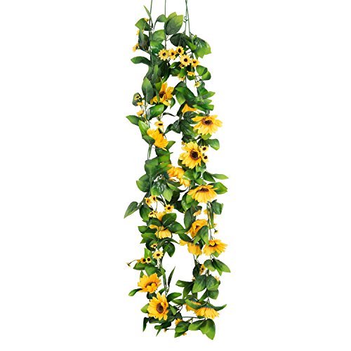 2pcs Artificial Sun Flower Garland Hanging Plant Vine 6.8 feet for Home Party Wedding Garden Decor DIY Wreath