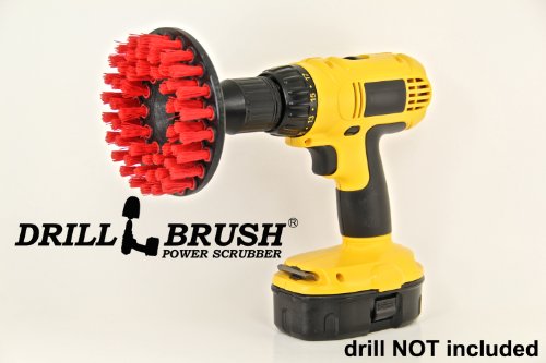 The Heavy Duty Carpet Brush with Drill Attachment can be used to clean carpet, fabrics, upholstery, seats, wheels and much more. The high speed rotation of the drill combined with the highest quality premium heavy duty brush lifts and easily extracts spots from leather, fabric upholstery and carpet. This heavy duty brush is made of 100 percent polypropylene which is the most durable material for brushes. For best results, always wash the surface with water then spray or apply your cleanser or soap. Tilt the rotating brush at approximately 15 degrees from the vertical. Too much angle results in only a small portion of the brush being used. Too little angle or flat on the surface lessens the cleaning results and causes the brush to wobble. Wash off the surface with water, check for spots that may have been missed and repeat if necessary. Always wear face and body protection while using this drill brush. Be sure that the brush's steel insert shaft is firmly fastened in the drill chuck. Always use a properly grounded machine with a maximum RPM of 3,500.
