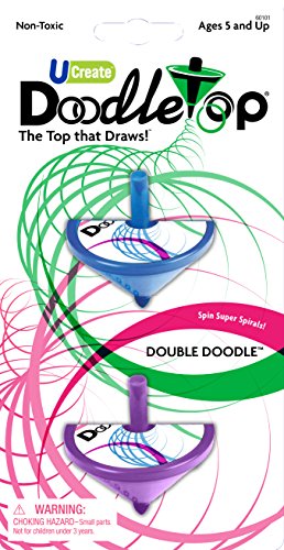 Spin circles around friends, family, and co-workers with Doodletop - the only top that draws! Wide angle spins mean larger spirals, while tight spins make smaller spirals. Tilt the surface to create wild designs! After spinning, use your pen to turn your Doodles into inspired pieces of art by adding lines and textures. Colors may vary. Order Doodletop Refill Pens to pop in different colors and continue the Doodletop fun.Feature