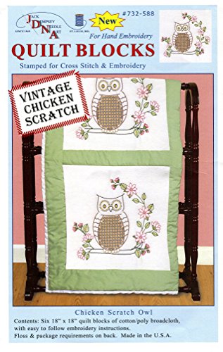 Jack Dempsey Stamped White Quilt Blocks, 18-Inch by 18-Inch, Chicken Scratch Owls, 6-Pack