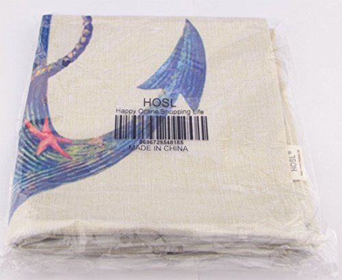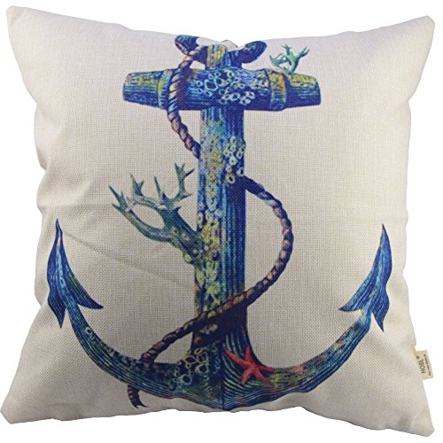 HOSL Blending Linen Square Throw Pillow Case Decorative Cushion Cover Pillowcase for Sofa Blue Rusty Anchor with Coral 18 "X18 "