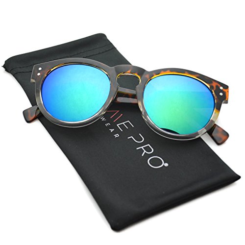 -. Title : Vintage Inspired Mirror Lens Round Horned Rim Frame Retro Sunglasses