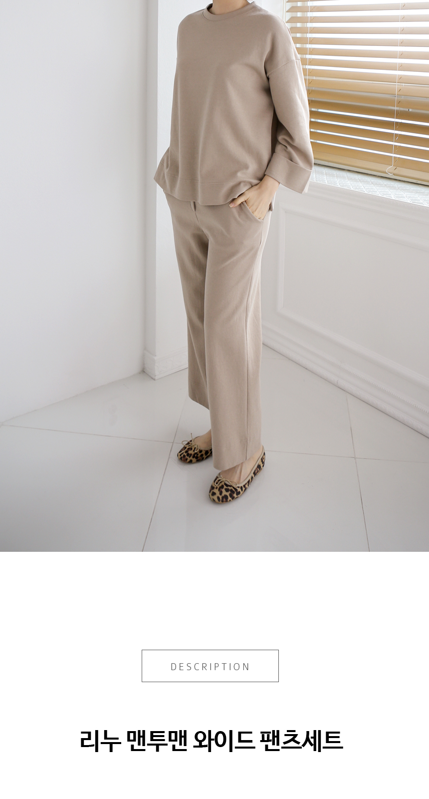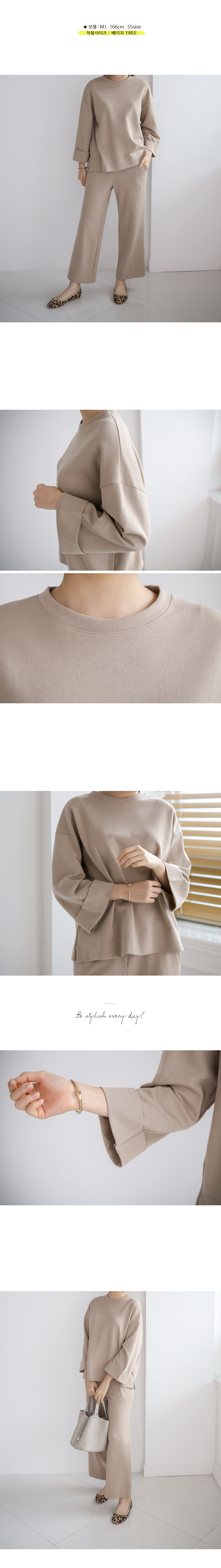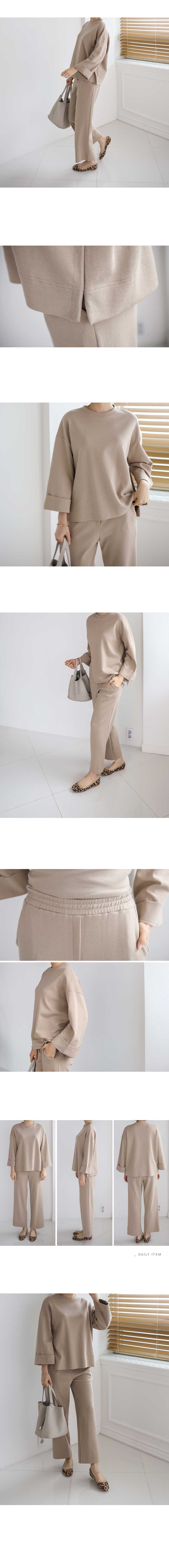 롤업 소매가 단정한 맨투맨 와이드팬츠 세트