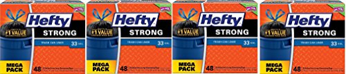 Hefty Strong Large Trash Bags KXSFuy, 33 Gal (Trash Can Liner, Drawstring), 48 ct, Pack of 4