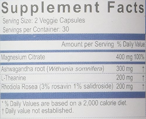 ReleaseDate : 2015-07-03 Studio : Creative Bioscience Publisher : Creative Bioscience Binding : Health and Beauty Product Description Creative Bioscience Stress Formula, 60 Veggie Capsules. Stress Formula is a blend of 400 mg of Magnesium Citrate, 300 mg of Ashwagandha, 200 mg of L-Theanine and 200 mg of Rhodiola. Each ingredient is believed to have anti-stress and calming properties 0