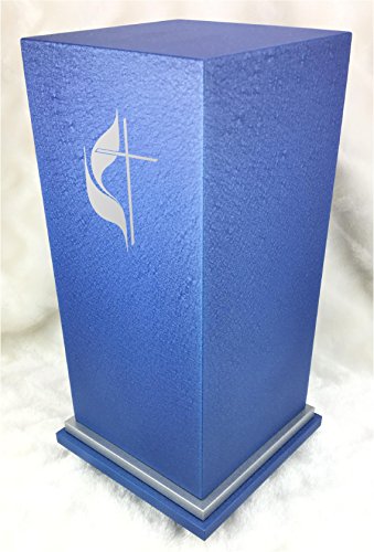 PERSONALIZED Custom Engraved Methodist Cross Cremation Urn Vault by Amaranthine Urns, made in the USA, Eaton SE Painted Silver (up to 200 lbs living weight) (Deep Sea Blue)