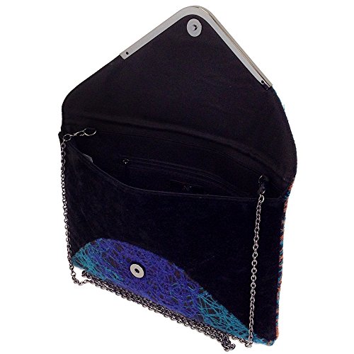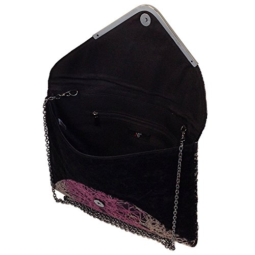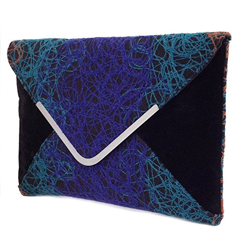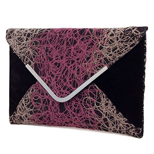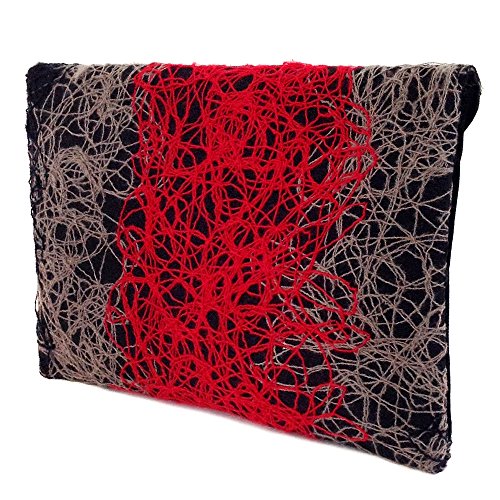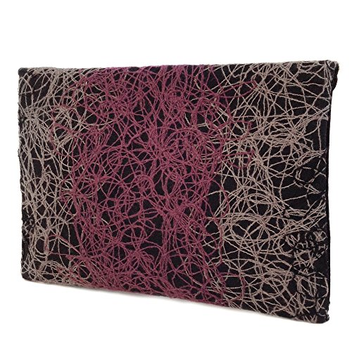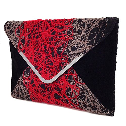 -. Brand : JNB -. Department : womens -. Feature : Comes with 21" drop crossbody chain / Black twill fabric lining / Inside features zippered pocket / Magnetic Snap Closure / Gun Metal color Hardware -. ProductGroup : Shoes -. ProductTypeName : HANDBAG -. Title : Ombre color Mixed Fabric Bohemian Envelope Clutch, Red