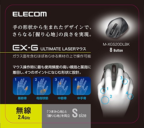 ◆ The design was born from the shape of the hand realizing the goodness of further "knob comfort " "grip comfort". Equipped with ULTIMATE laser sensor that can be operated almost on every material 2.4GHz wireless type of 8-button mouse "EX-G" ■ USB (wireless) connection [Windows10 / RT8.1 / 8.1 / 7 / Vista] [Macintosh OS X 10.10] /