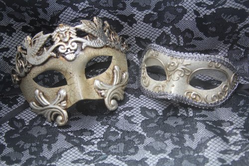 -. Title : Venetian Silver Couple Vintage Masquerade Carnival Costume Mask