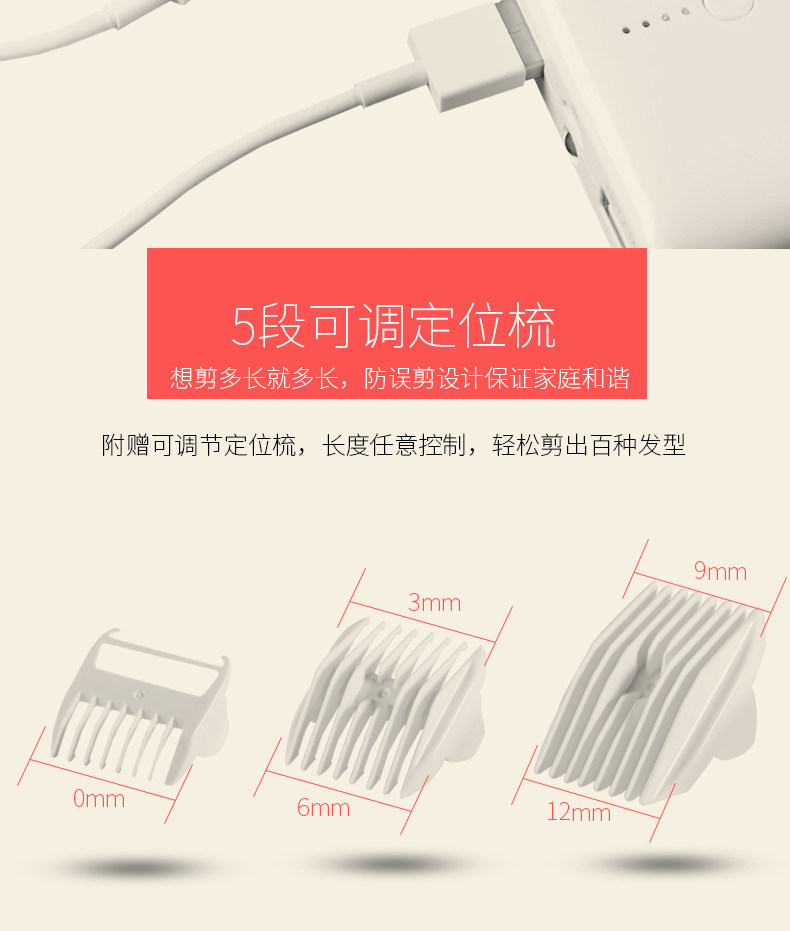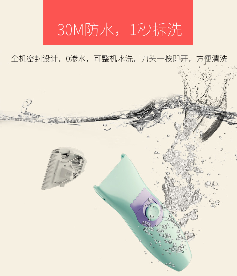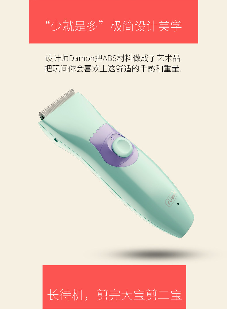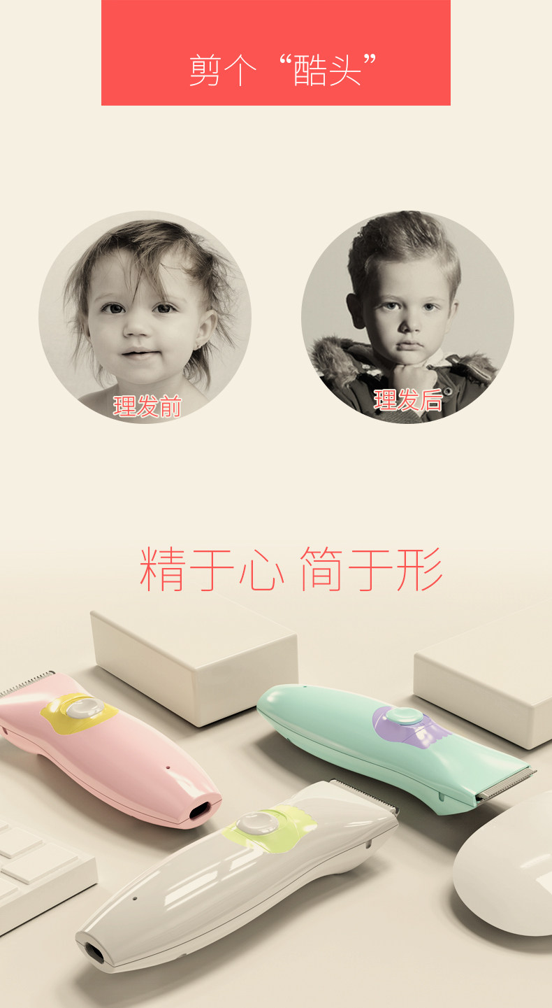 鲁茜婴儿理发器 宝宝剃头器剪发器 儿童充电超静音防水电推剪
