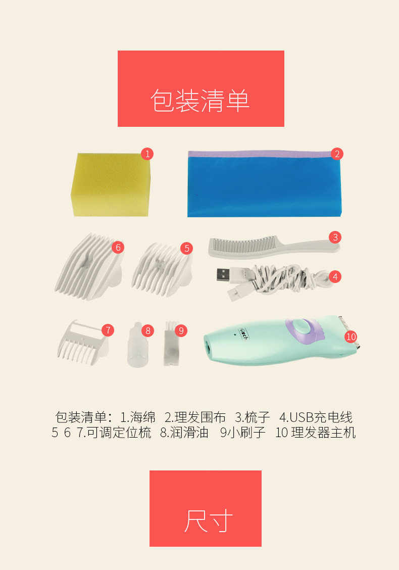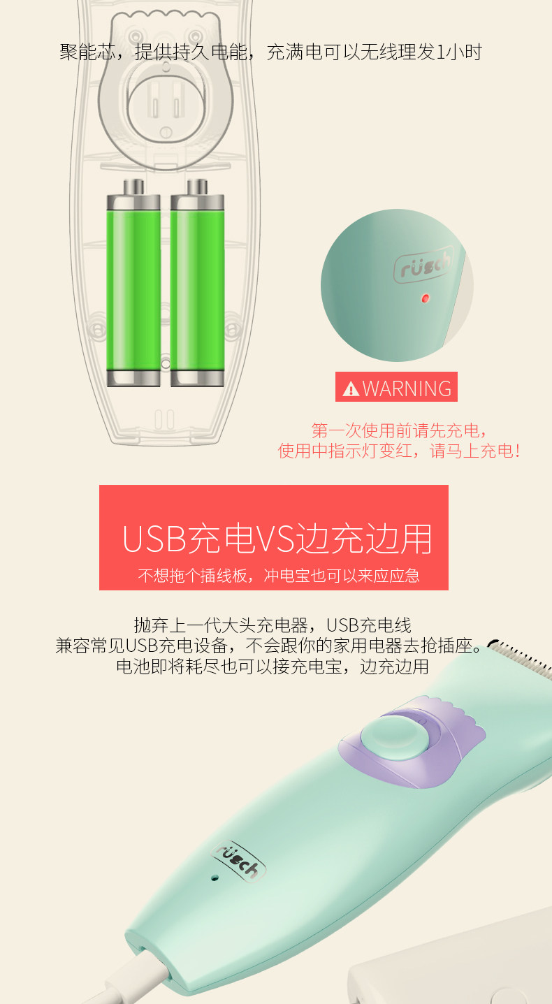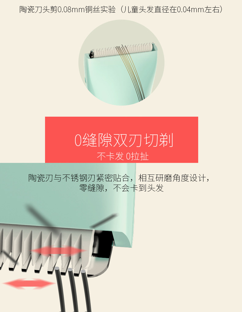 鲁茜婴儿理发器 宝宝剃头器剪发器 儿童充电超静音防水电推剪