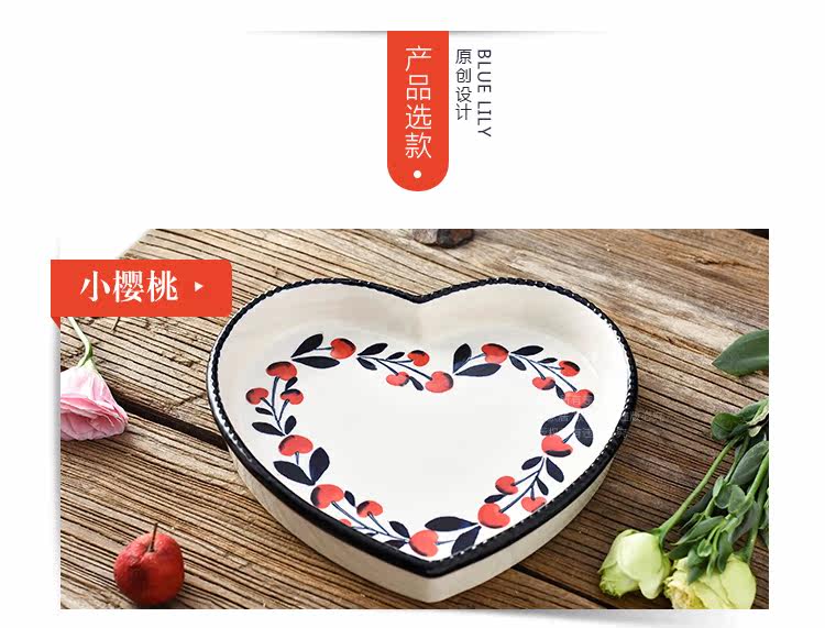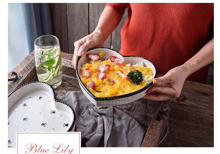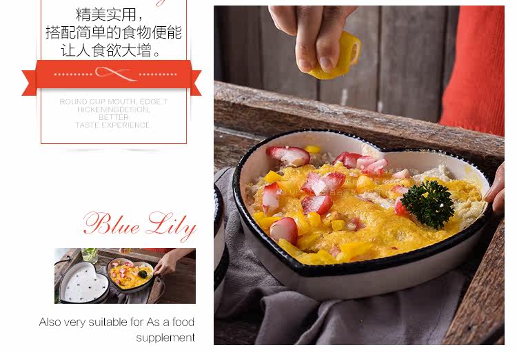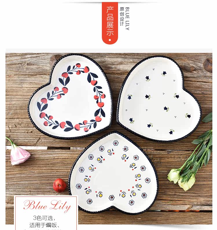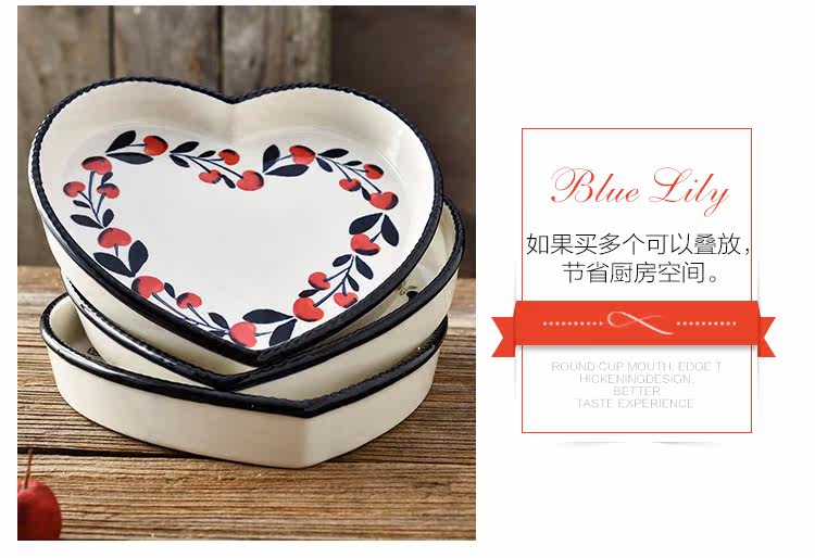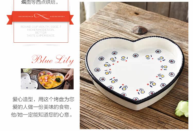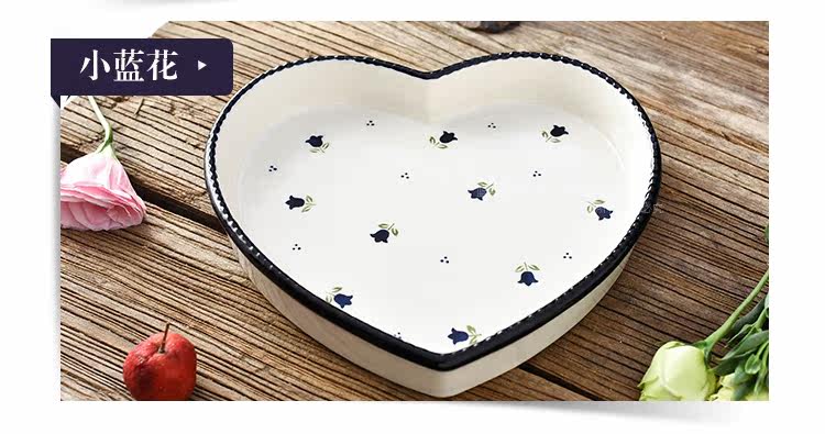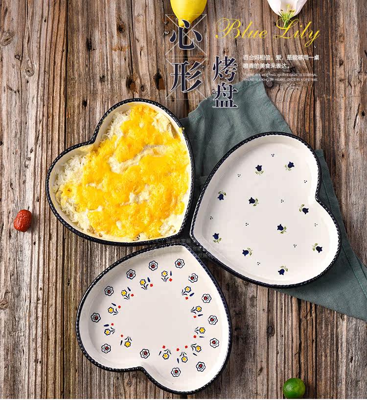爱心形陶瓷焗饭烤盘8英寸 菜盘点心盘子烤箱烘培模具摆盘拍照神器