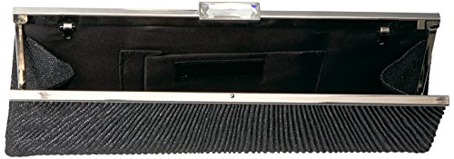 The Jessica McClintock sloan lurex pleated framed clutch will add just the right amount of sparkle and shine to any look. Wear it as a clutch or shoulder/crossbody with the added drop in strap. Also included is a back slip pocket to secure your cards and id.