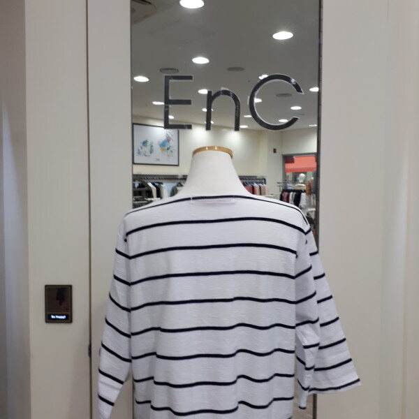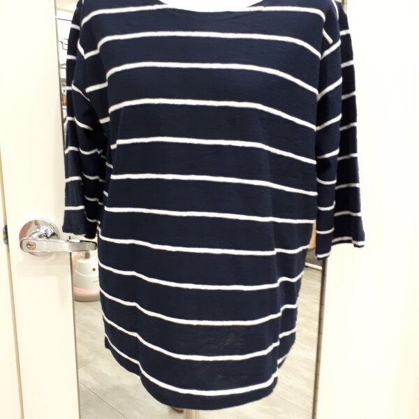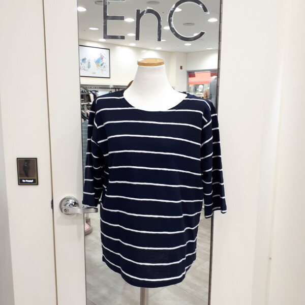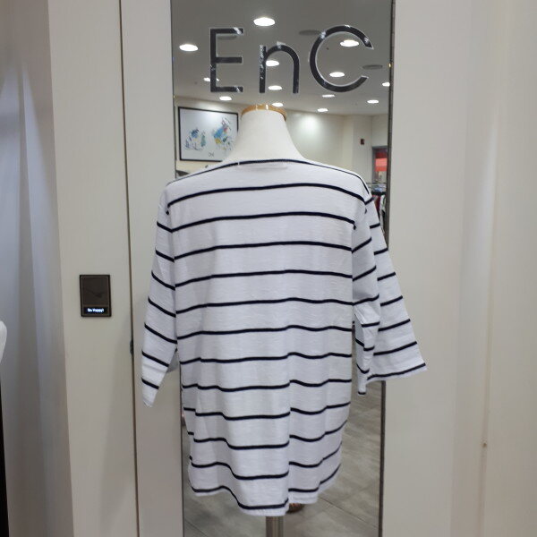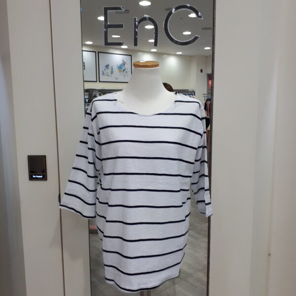 깔끔하고 루즈한 줄가라 티셔츠입니다