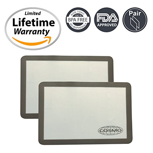 - WARRANTY: Lifetime Manufacturer’s Warranty. Cosmo silicon mats for cooking and baking are backed with a trusted lifetime guarantee.