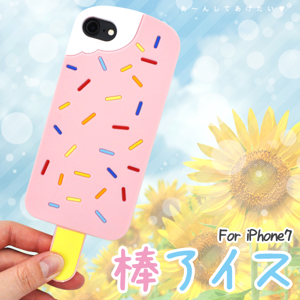 いちご味(の色をしている)のiPhone7用の棒アイスケース。