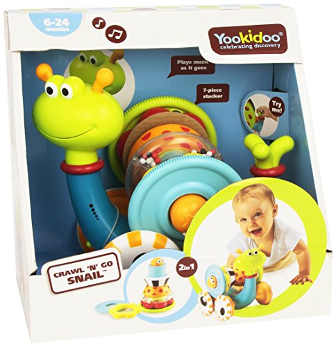 - Musical battery-operated snail rolls along and spins its shell as it goes