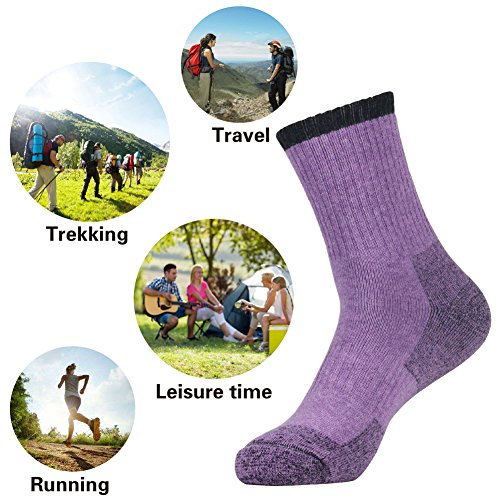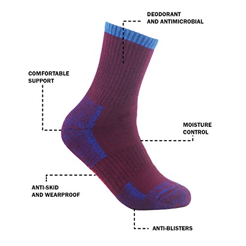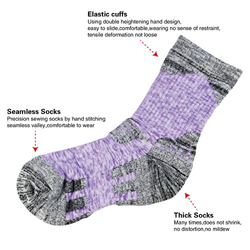 -. Feature : COMFORTABLE SUPPORT - YUEDGE hiking socks have employed SEAMLESS SPLICING design with pretty smooth toe. Y-type ribbed arch with reinforced cushion in heel&toe can provide excellent foot comfort during hiking, walking or any other outdoor activity. / ANTI-SKID AND WEARPROOF - The lengthened double-ribbed cuff and elastic bands make the socks anti-skid and comfortable; and thickened terry fabric enhances durability in high-wear areas. / MOISTURE CONTROL - Walk all day long and NO NEED TO worry about moisture due to our Exclusive Moisture Wicking Management, breathable and fast drying, keeping your feet cool and dry. / ANTI BLISTERS - Of high-density texture with perfect elasticity, Our socks can well ease impact and reduce friction, effectively protecting your feet from painful blisters. / DEODORANT AND ANTIMICROBIAL - Made from natural antibacterial and deodorant fabric of high quality, which helps to stop smelly feet. Ideal for outdoor sports, camping, hiking, climbing, trekking, running, walking, etc.