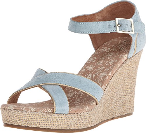 Textile or suede upper. Ankle strap with side buckle for a secure and adjustable fit. Soft textile lining offers a comfortable next-to-skin feel. Cushioned comfort insole for added underfoot support. Rope wedge. Durable rubber outsole. Imported.