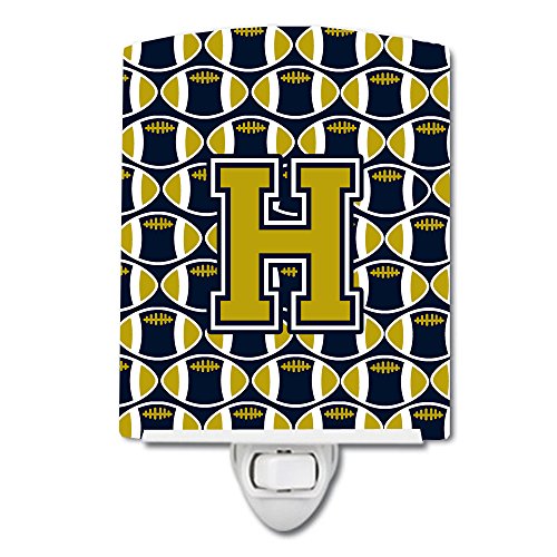 Caroline's Treasures Letter H Football Blue and Gold Ceramic Night Light, 6 x 4", Multicolor