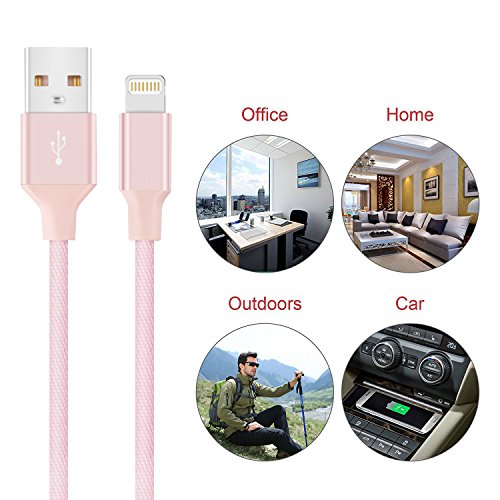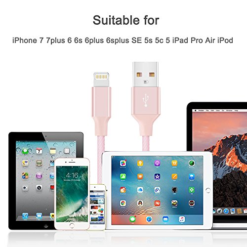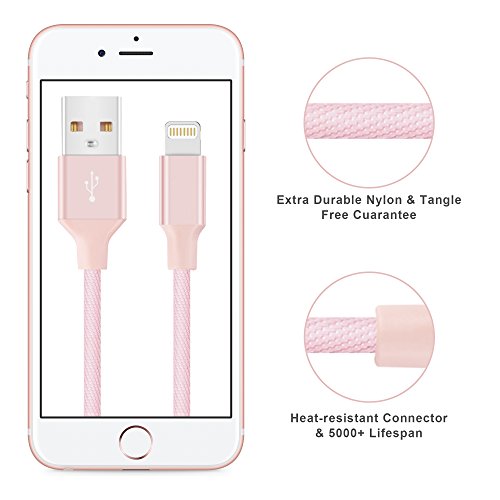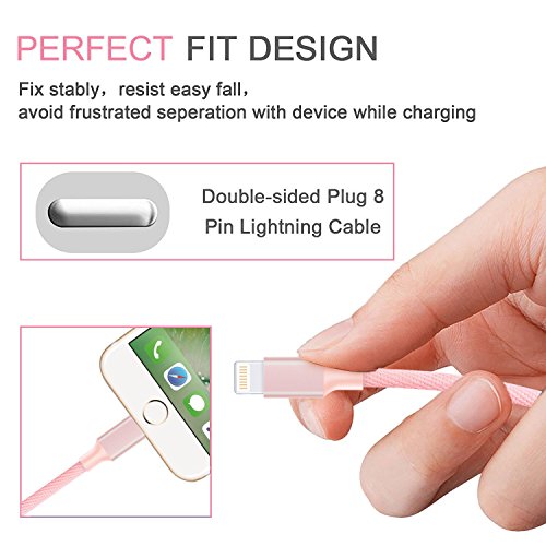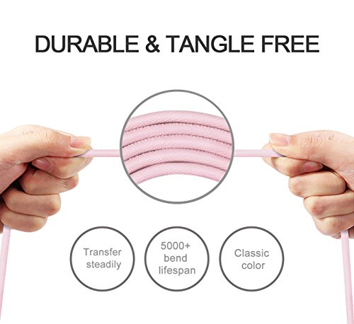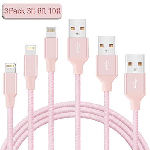 Avoalre 3 Pack 3ft 6ft 10ft iPhone Charger Cable Durable Braided Nylon USB Lightning Charging Cable Cord High Speed for iPhone 7 Plus 6s Plus iPad iPod - Pink