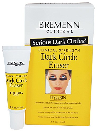 -. Binding : Health and Beauty -. Brand : Basic Research -. EAN : 0815238010352 -. Feature : FIX THOSE CIRCLES- Dramatically reduce the appearance of serious dark circles / BRIGHTEN YOUR EYES - Reduce the look of dark discoloration / LOOK YOUNGER- Impart a more youthful appearance to the eye area / REJUVENATE YOUR SKIN- Visibly firm and tone the skin directly under the eye -. IsAdultProduct : 0 -. Label : Basic Research -. Manufacturer : Basic Research -. MPN : 815238010352 -. NumberOfItems : 1 -. PackageQuantity : 1 -. PartNumber : 815238010352 -. ProductGroup : Beauty -. ProductTypeName : HEALTH_PERSONAL_CARE -. PublicationDate : 2014-05-27 -. Publisher : Basic Research -. ReleaseDate : 2014-06-03 -. Studio : Basic Research -. Title : BREMENN CLINICAL Hylexin Dark Circle Eraser (.5 oz.)- Specially Formulated Cosmetic Cream that Addresses Serious Dark Circles and Visible Puffiness Surrounding the Orbital Eye Area -. UPC : 787734592697