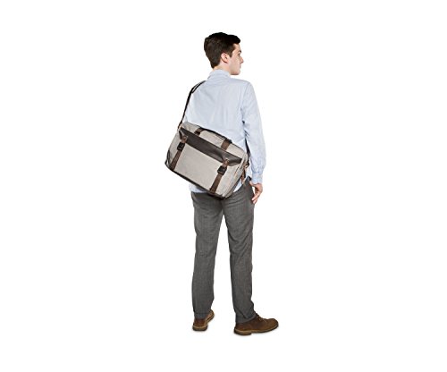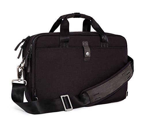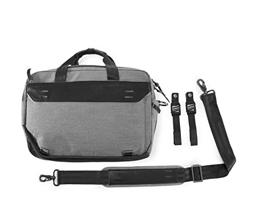 -. Feature : Durable Cordura nylon fabric / Genuine leather binding and trim / Internal neoprene pockets for smartphone, hard drive or charger / Padded, tricot-lined laptop compartment (fits up to 15 Macbook) / Removable shoulder strap allows carry as a messenger or briefcase