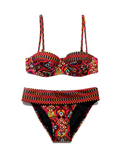 -. Binding : Misc. -. Brand : RELLECIGA -. Department : womens -. Feature : Back closure / Removable halter straps / Build-in Underwire for Support / Foldover waistband for different rises / Classic fit with regular coverage -. ProductGroup : Apparel -. ProductTypeName : SWIMWEAR -. Title : RELLECIGA Women's Exotic P.R.Int Balcony Top with Foldover Bottom Bikini Set