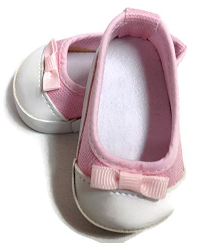 -. Title : 18" Doll Clothes Fits American Girl Pink Canvas Slip On Tennis Shoes with Bow