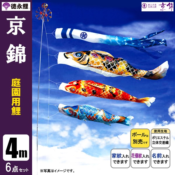 | 京錦 鯉 庭園用大型鯉のぼり 杭打込式ポール付セット | 1.5m鯉3匹 | 2m鯉3匹 | 3m鯉3匹 3m鯉4匹 3m鯉5匹 | 4m鯉3匹 4m鯉4匹 4m鯉5匹 |