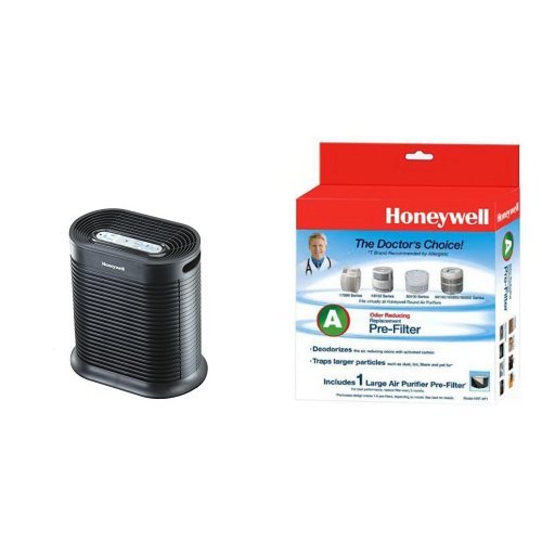 -. Title : Honeywell HPA100 True HEPA Allergen Remover, 155 sq. ft. & Honeywell HRF-AP1 Filter A Universal Carbon Pre-filter, Pack of 1