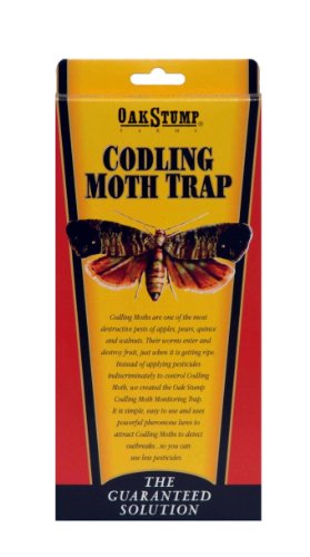 SpringStar S1506 Oak Stump Codling Moth TrapCodling moths are worldwide pests that damage the fruits of apple, pear and quince during the insect's worm stage. Codling moths can infest every apple in an orchard if left unchecked. The worms burrow through the fruit, leaving brown frass and tunnels. The resulting fruit is often unsuitable for eating. Codling moth worms hatch out of eggs which are laid on the fruit by female moths. The moths emerge 3 to 5 times a year (depending on climate) starting soon after bud break. Controlling the moths during these key flight times, before the eggs are laid, can effectively prevent worm damage to fruit. The Codling Moth Trap pinpoints these flight times by capturing the male moths which fly at the same time as the female moths. Apply appropriate controls at these peak times.SpringStar S1506 Oak Stump Codling Moth Trap Features: Codling moths are worldwide pests that damage the fruits of apple, pear and quince during the insect's worm stage Codling moths can infest every apple in an orchard if left unchecked Trap pinpoints these flight times by capturing the male moths which fly at the same time as the female moths Apply appropriate controls at these peak times Kit contains two pheromone lures, 2 traps and hangers Lures last 3 weeks CardedFeature