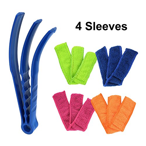 -. Feature : GREAT BLINDS DUST CLEANER - this window blind brush is a very good helper to be used in office and house, the unique design blades can clean dusts inside of window blinds and air conditioner blind, even car blinds / 4 DIFFERENT COLORS MICROFIBER SLEEVES - blue red green orange, compare to the common cloth, it can work better to clean dust as the sleeve is microfiber that has high water-absorbent, easy wash, strong detergency features / PERFECT RADIAN ABS ARM - this perfect radian arm is designed to suit all the window blinds, and 3 blades can clean 2 blinds tones at the same time / SIZE AND WEIGHT - L 8.00inch * W 0.86inch arm, L 4.00inch * W 1.40inch sleeve, 2.8 oz per set / 100% MONEY-BACK GURANTEE - u can get full payment refund within 6 months if you are not satisfied to our window blind brush
