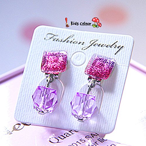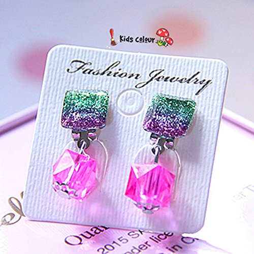 Elesa Miracle Girl Party Favor Birthday Gift Pretend Play Princess Jewelry Set 4pc Square-Shaped Pearl Clip-on Earrings Value Set